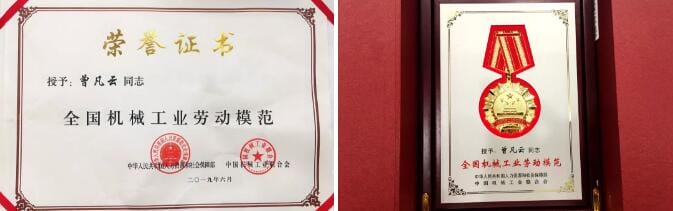 国家人力资源和社会保障部、中国机械工业联合会全国机械工业先进集体、劳动模范和先进工作者每五年评选一次,本届在全国30余个省区市中评选出96个“全国机械工业先进集体”、91名“全国机械工业劳动模范”、3名“全国机械工业先进工作者”,湖南省在本届评选中共有2人获得“全国机械工业劳动模范”荣誉。