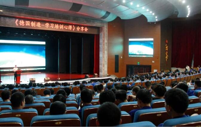 被派到Romaco集团在德国和意大利的公司学习工作的楚天员工,亲身接触到德国制造的严谨和科学,体会到造就高品质背后的逻辑和原理,这种零距离体验也让他们愿意向更多楚天人分享心得收获。楚天科技7月30日晚上举行Romaco学习交流心得分享会,楚天大剧院坐满了前来聆听的各部门员工。