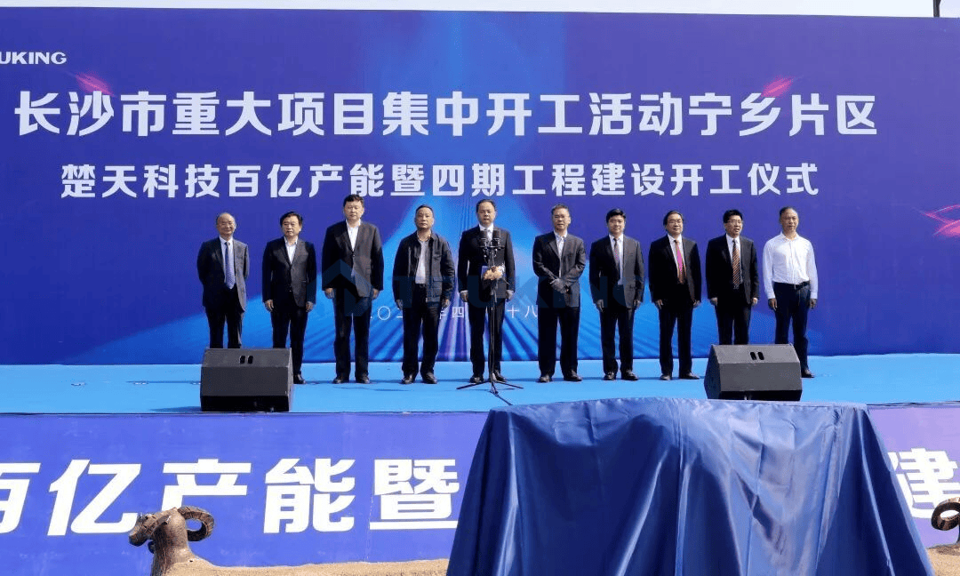 “楚天科技百亿产能暨四期工程建设,现在正式开工。”随着长沙市委副书记、代市长郑建新的宣布,4月28日早上楚天科技第四期工程工地上工程车辆汽笛鸣响,并启动工程建设作业。湖南省工信厅党组书记、厅长曹慧泉,长沙市委常委、政法委书记钟钢,长沙市副市长邱继兴,宁乡经开区党工委书记、宁乡市委书记周辉,以及宁乡经开区党工委副书记、管委会主任张毅等湖南省市领导、相关部门负责人,楚天科技董事长兼总裁唐岳等企业高管和干部员工代表,也参加楚天科技百亿产能暨四期工程建设开工仪式,宁乡市委副书记、市长付旭明主持开工仪式。