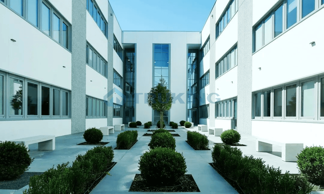 Romaco博洛尼亚新厂区总投资达1700万欧元,拥有如画的幽谷风景,还拥有宏大的室外绿化景区、停车场等设施,为员工带来更多福利,厂区室内建筑面积远远超过原有工厂,大幅提升整体产能,为用户带来更多便利和创造更大价值。新厂区不仅融入了非常多的人文关怀设计,也把环保理念贯穿到各个角落。